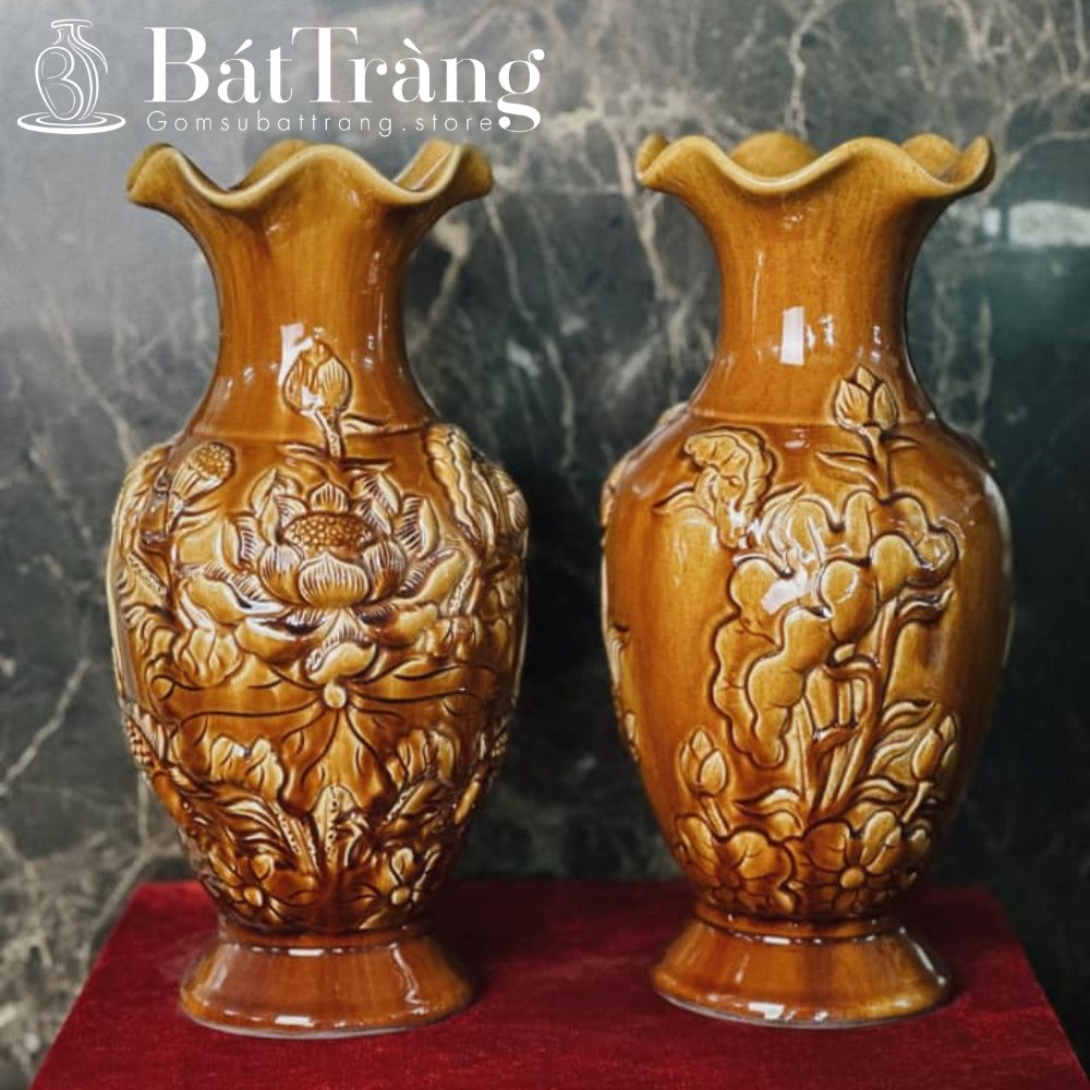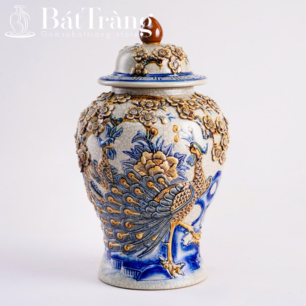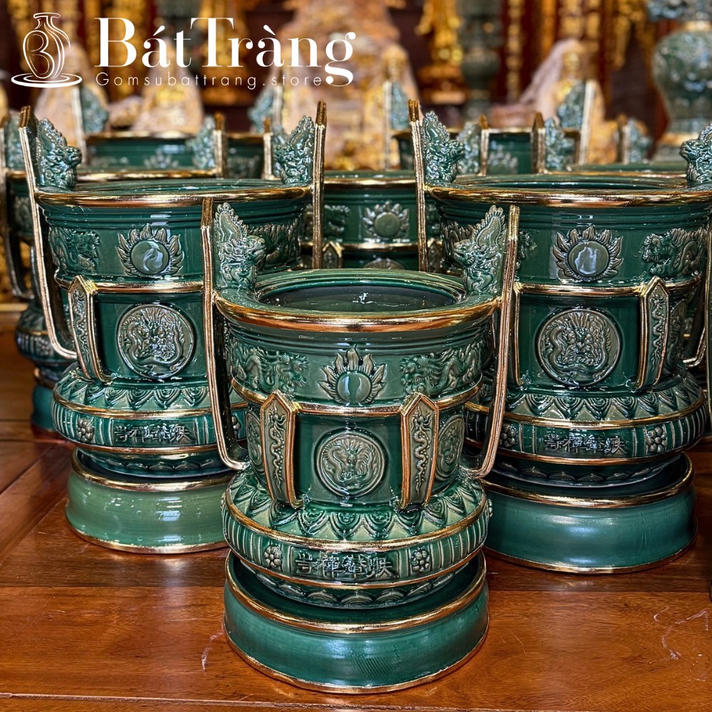 Đồ thờ men rạn đắp nổi nâng tầm không gian thờ cúng trang nghiêm