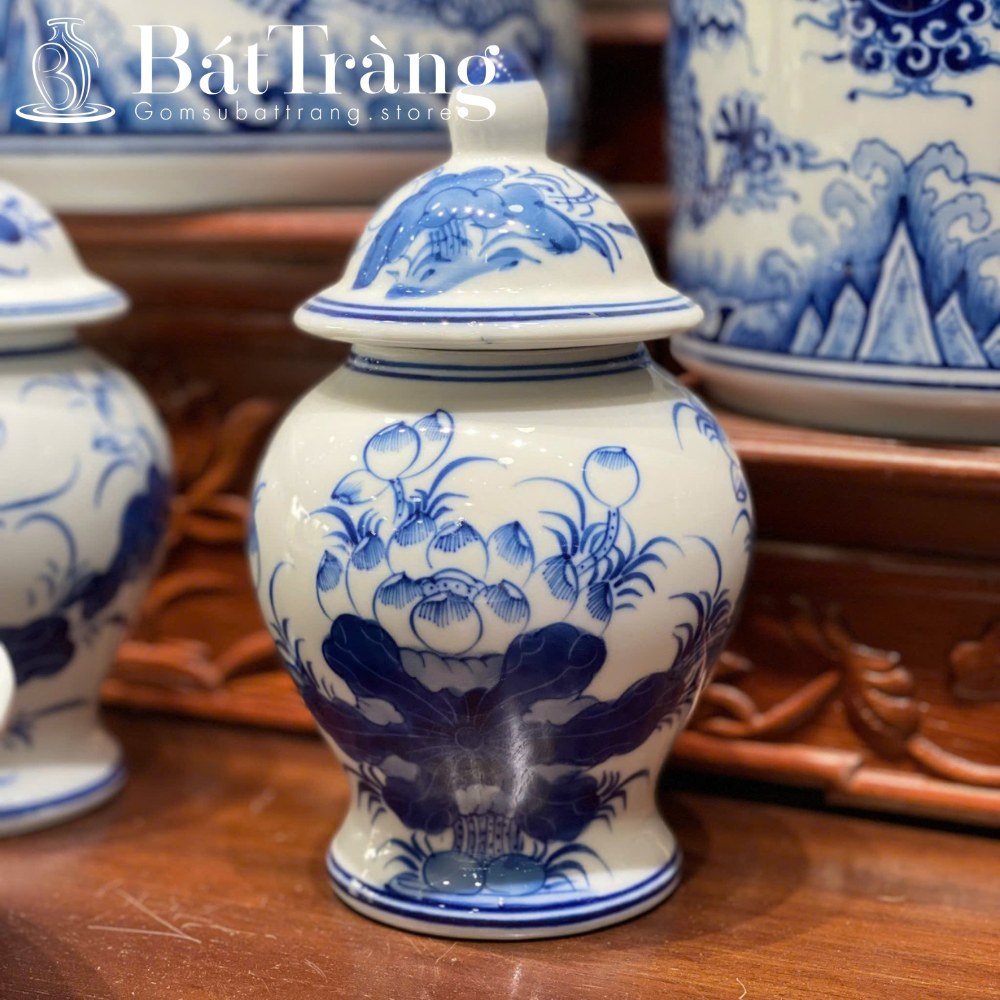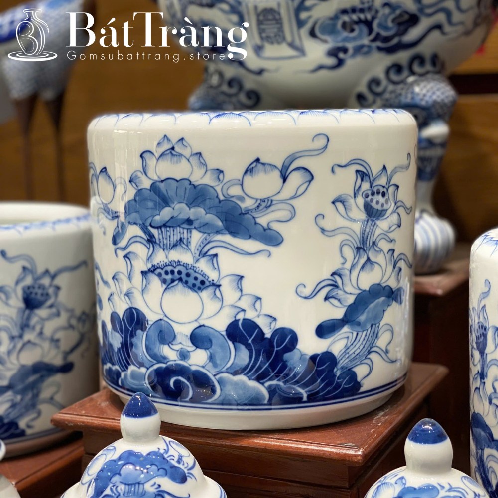 Đồ thờ men lam Bát Tràng vẽ tay họa tiết sen