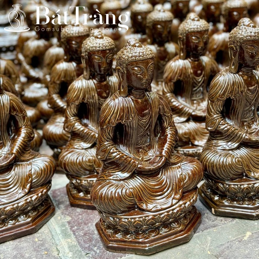 Tượng Phật, tượng rồng, lọ hoa men nâu hiện đại, bề mặt bóng mịn