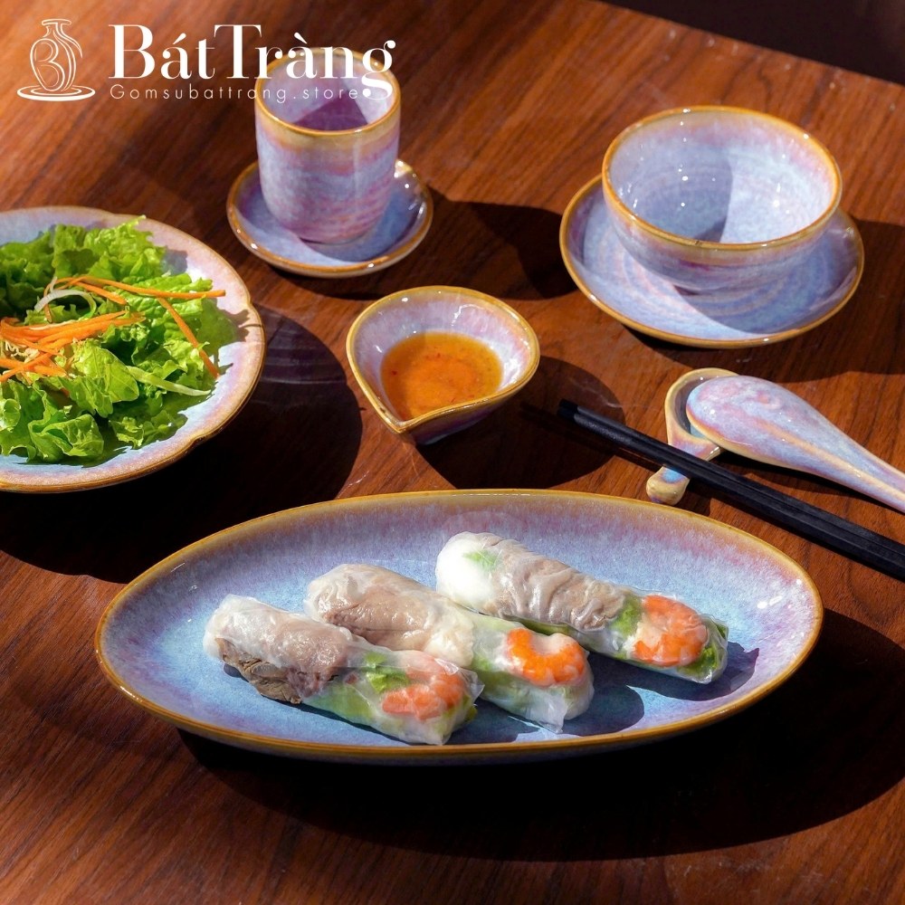 Màu men hỏa biến đa dạng sắc thái trên bát đĩa Bát Tràng