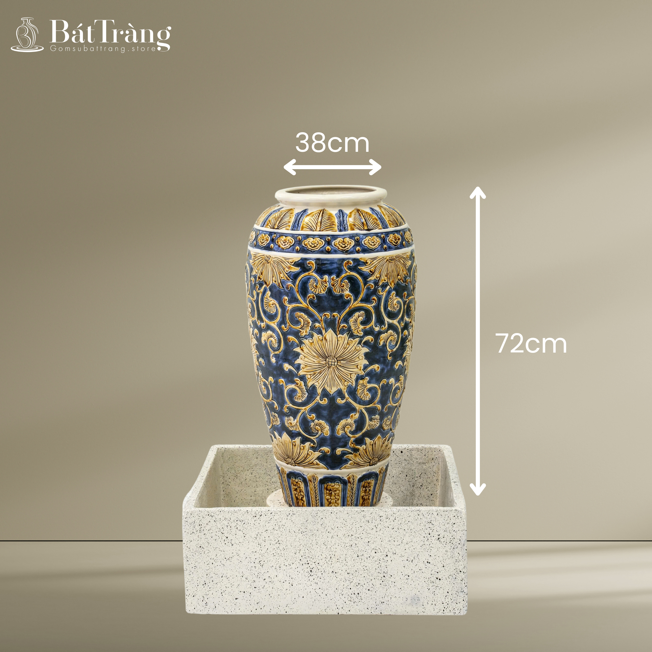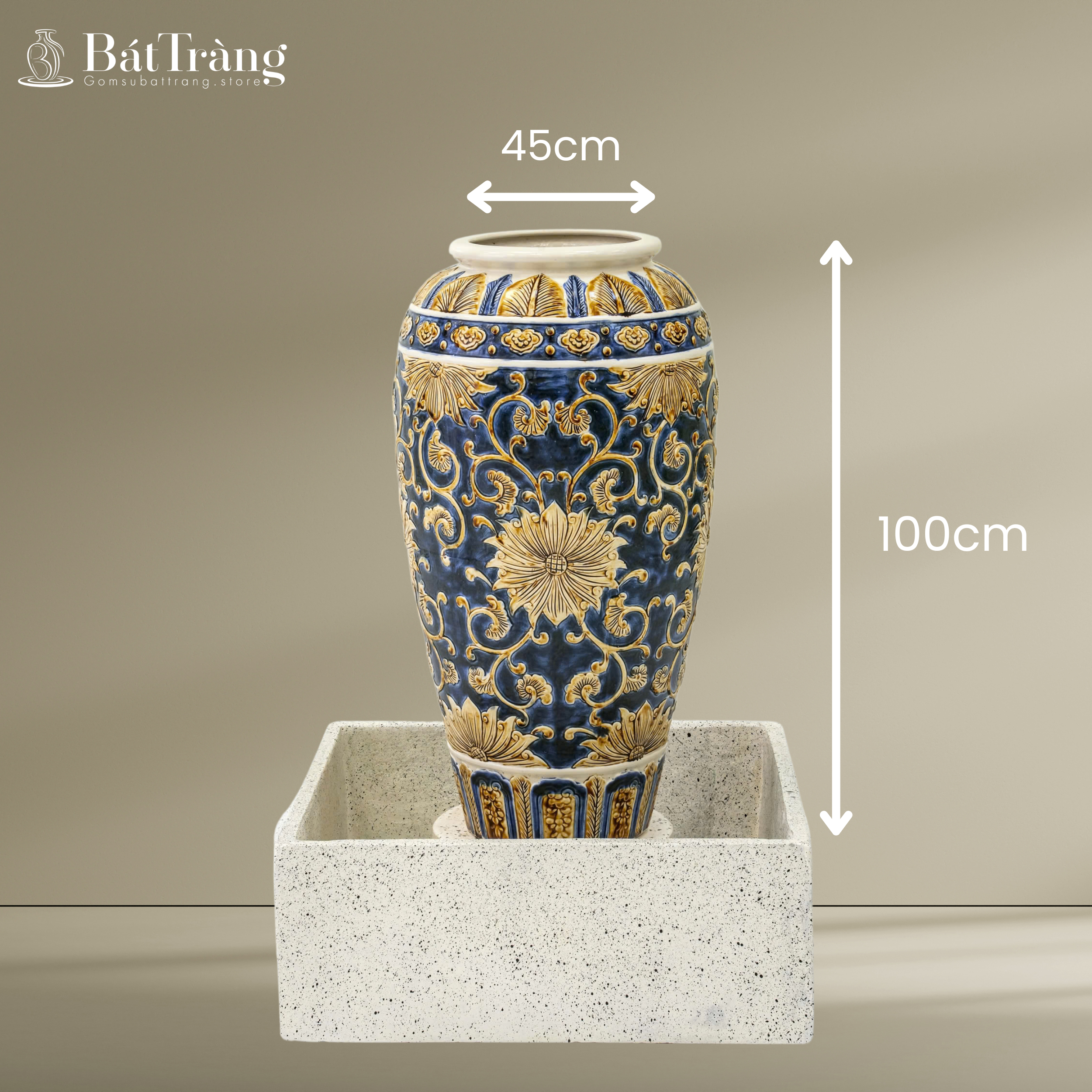 Khám phá Chum nước men xanh vàng hỏa biến khắc nổi hoa dây ST-CN02, một tuyệt tác gốm sứ Bát Tràng mang đậm giá trị phong thủy. Với kỹ thuật khắc nổi tinh xảo trên nền men hỏa biến độc đáo, chiếc chum này là biểu tượng của tài lộc, thịnh vượng và sự bình an, kiến tạo không gian sống và làm việc đẳng cấp.