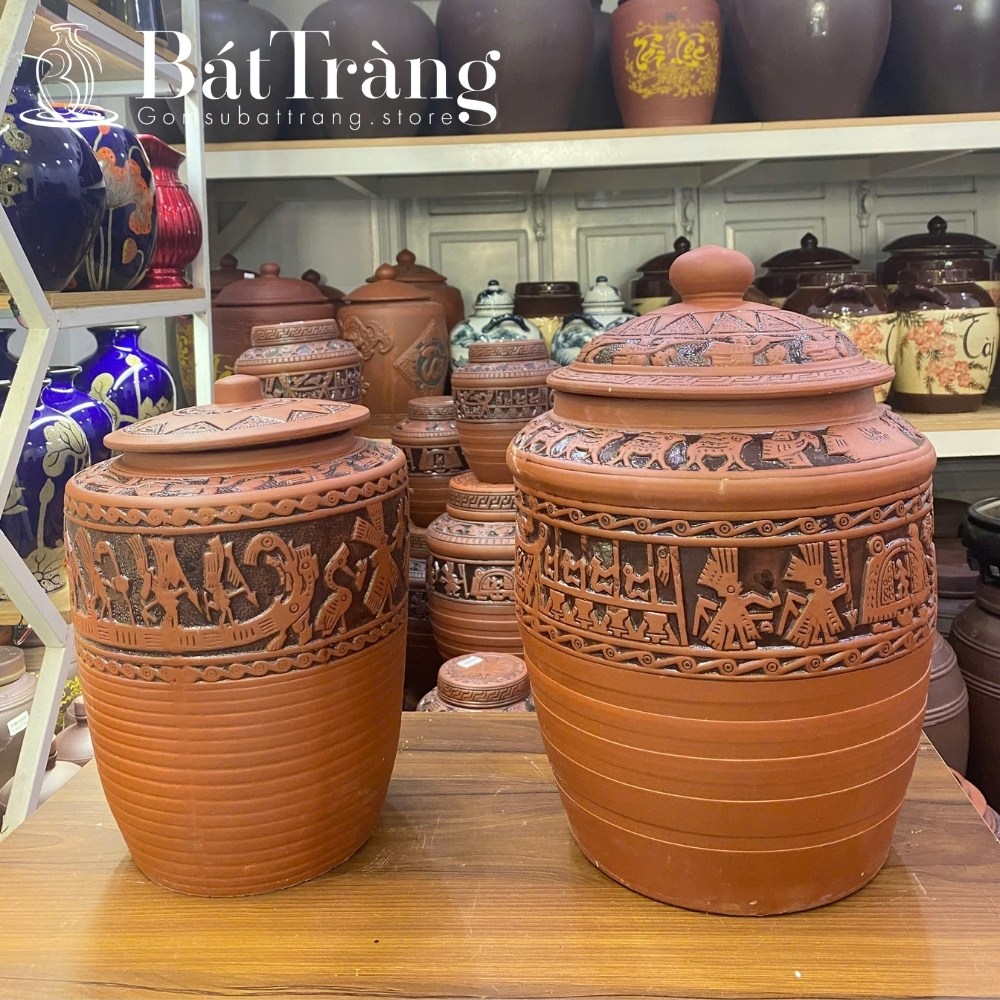 Hũ gạo và lu nước khắc chìm hoa văn mang vẻ đẹp thu hút