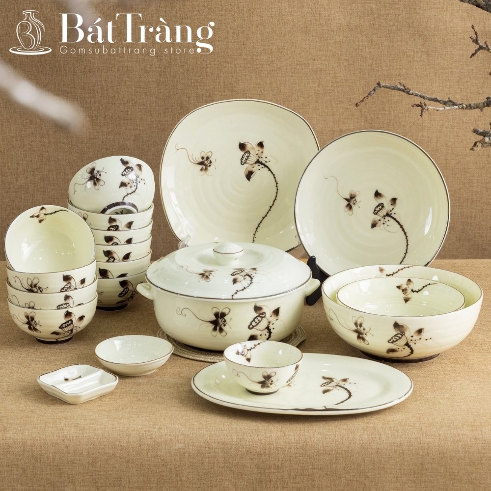 - Hoa Sen và các loài hoa khác: Hoa Sen là biểu tượng của sự thanh cao, thoát tục, mang lại bình an. Các loài hoa khác như Mẫu đơn, Phù dung, Cúc… cũng được thể hiện đa dạng qua kỹ thuật vẽ tay trên lọ hoa, bát đĩa, bình hút lộc hoặc đắp nổi tinh xảo.