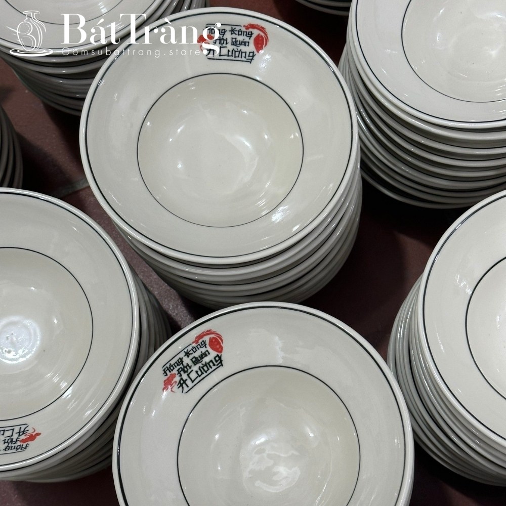 Để đáp ứng các đơn hàng số lượng lớn lên tới hàng nghìn chiếc với thời gian ngắn, kỹ thuật in decal (decal nước hoặc decal nhiệt) là giải pháp tối ưu nhất. Logo hoặc hoa văn thiết kế sẵn được in trên màng decal, dán lên gốm sứ và nung khử ở 700°C – 800°C.