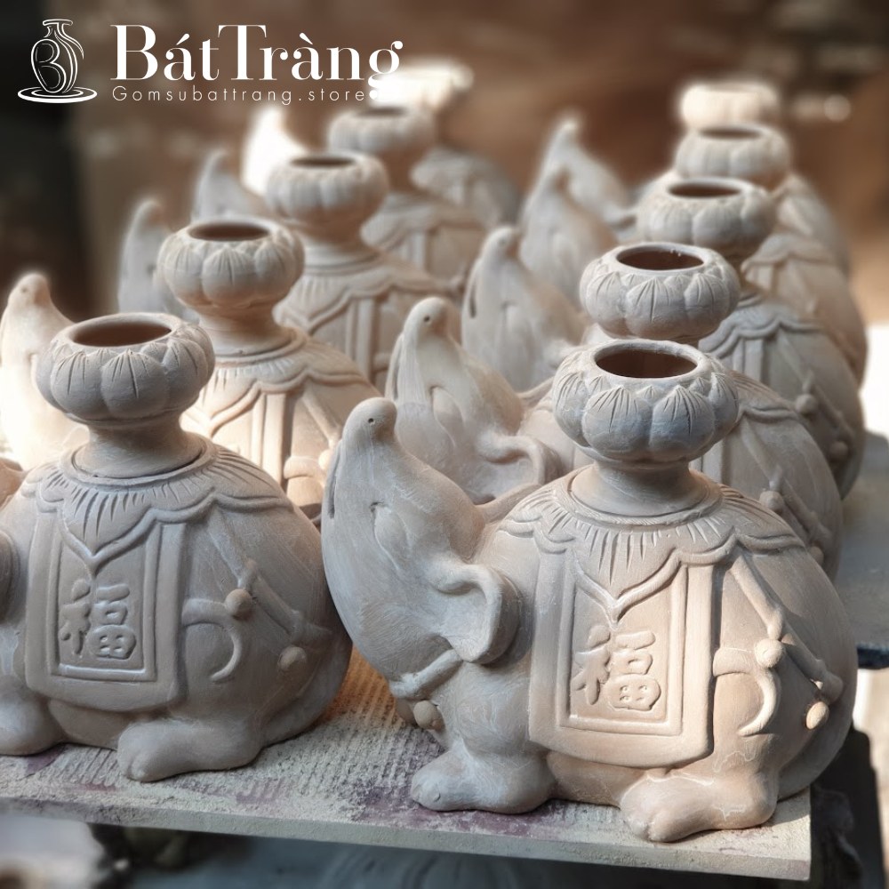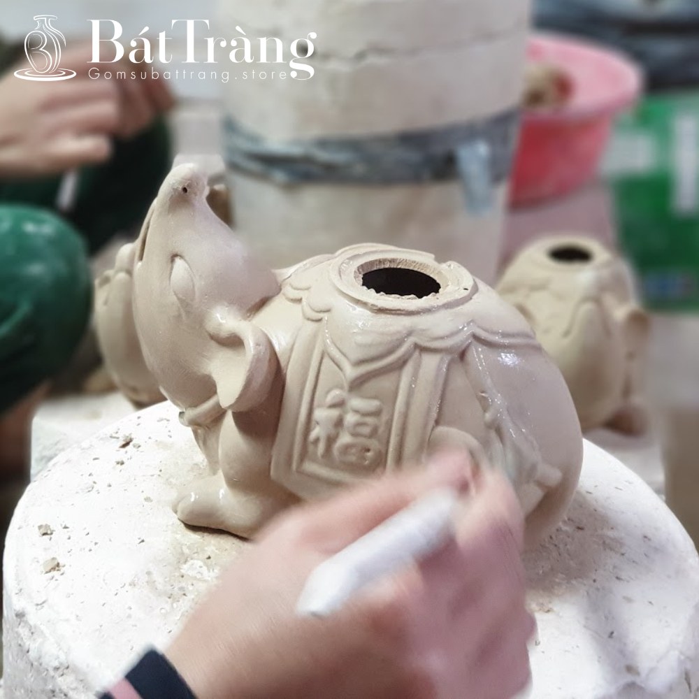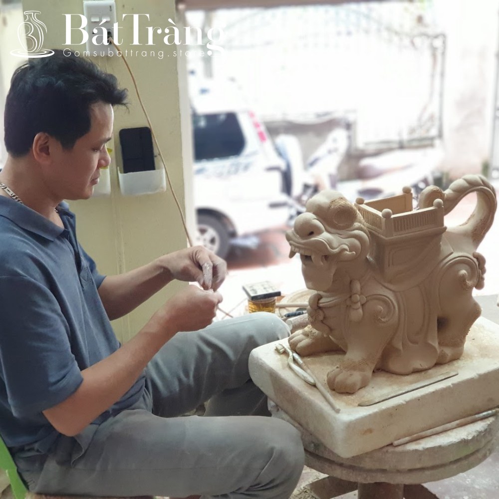 Sản phẩm gốm Bát Tràng được điêu khắc tỉ mỉ trên cốt gốm