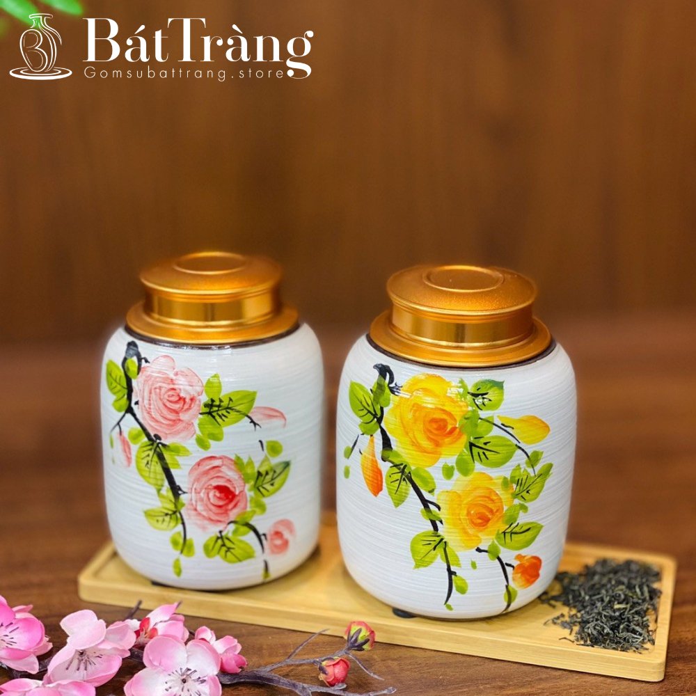 Các họa tiết vẽ tay tinh xảo trên lộc bình, hũ trà, bộ bát đĩa