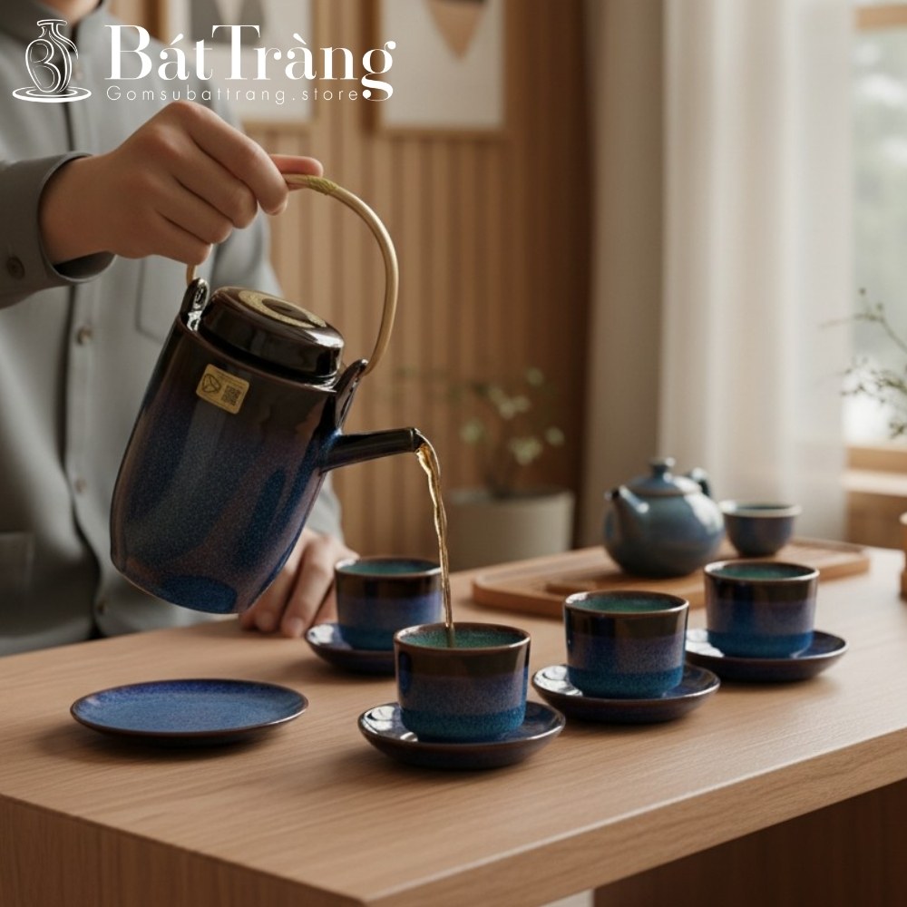Bộ ấm chén Bát Tràng nâng tầm thưởng trà thượng hạng