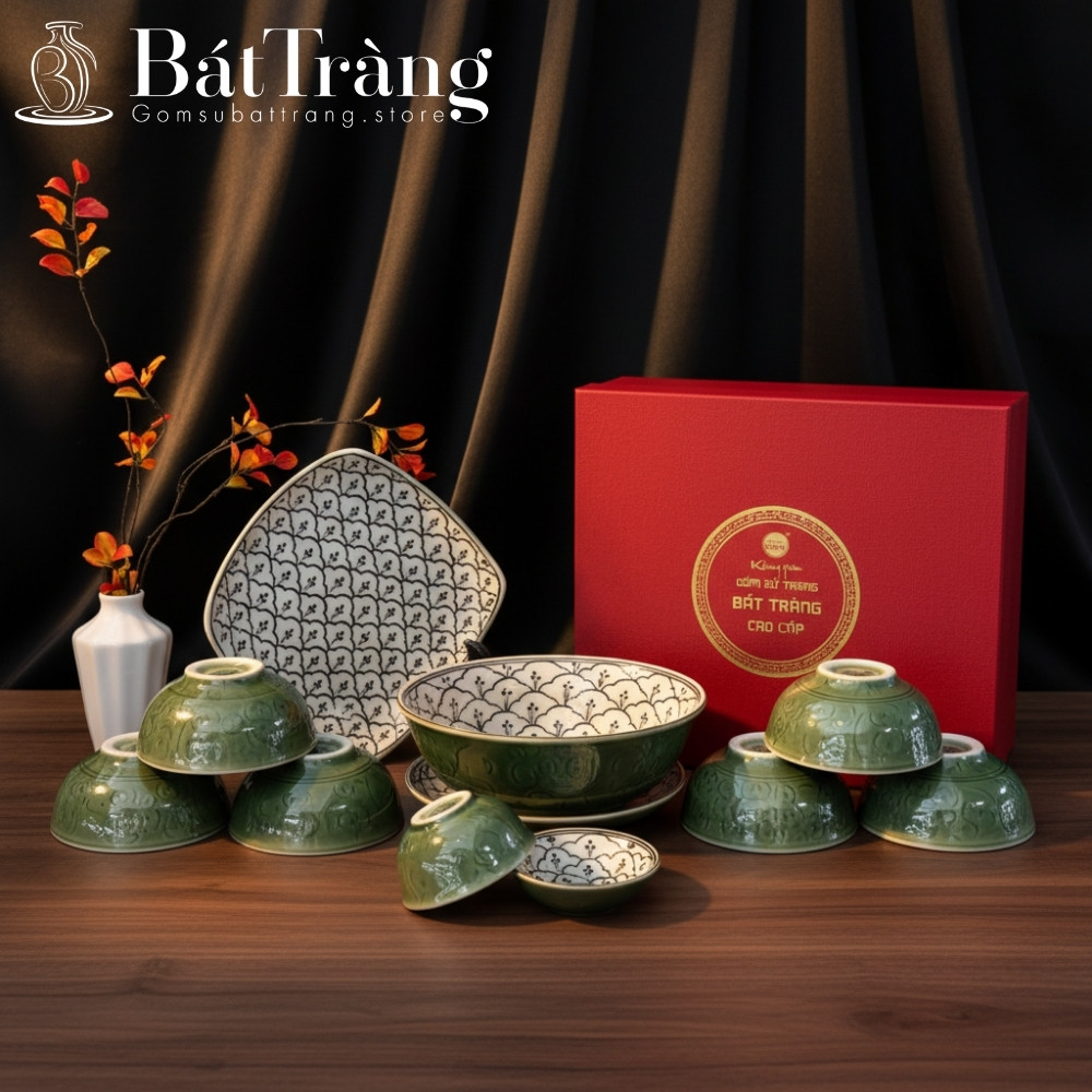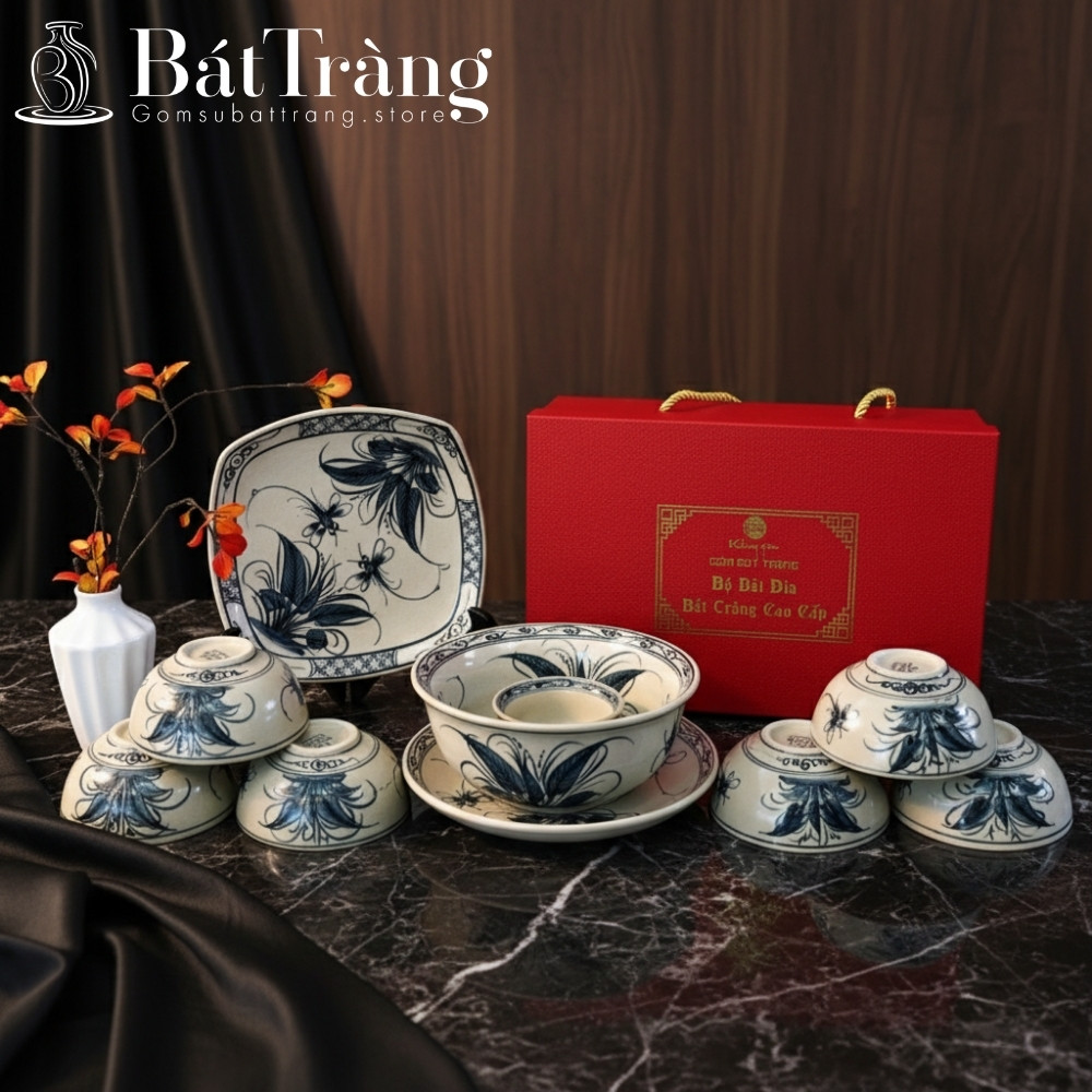 Set quà tặng bát đĩa sứ Bát Tràng cao cấp, giá thành hợp lý