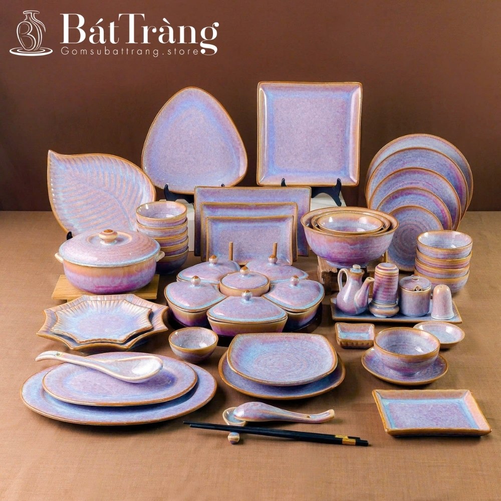 - Dành cho gia đình trẻ, hiện đại: Các bộ bát đĩa men trơn màu pastel, men hỏa biến với màu sắc độc đáo hoặc men kem hoa văn vẽ tay là điểm nhấn thanh lịch cho không gian bếp.
