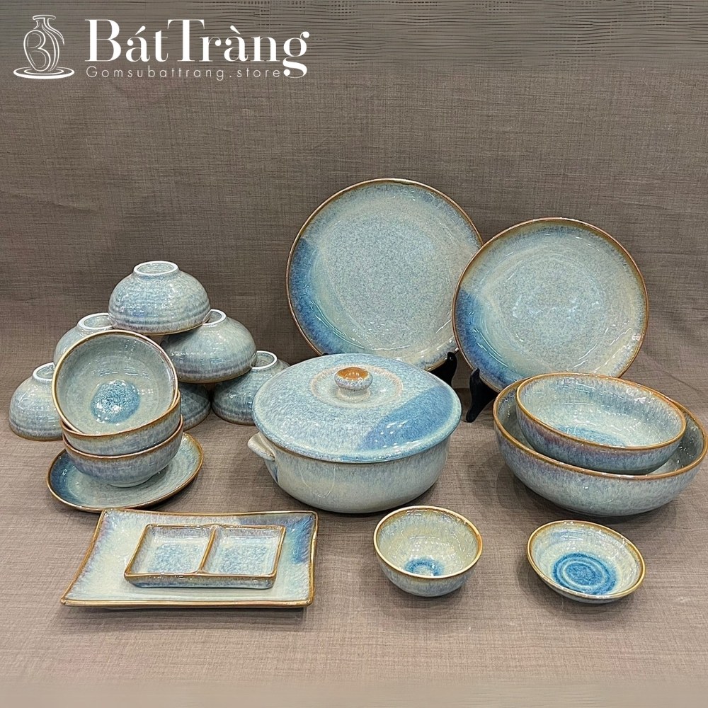 - Bộ đồ ăn cho gia đình nhỏ: Một set bát đĩa đồng bộ 4-6 người với họa tiết vẽ tay tinh xảo là lời chúc cho những bữa cơm gia đình luôn sum vầy, ấm cúng.