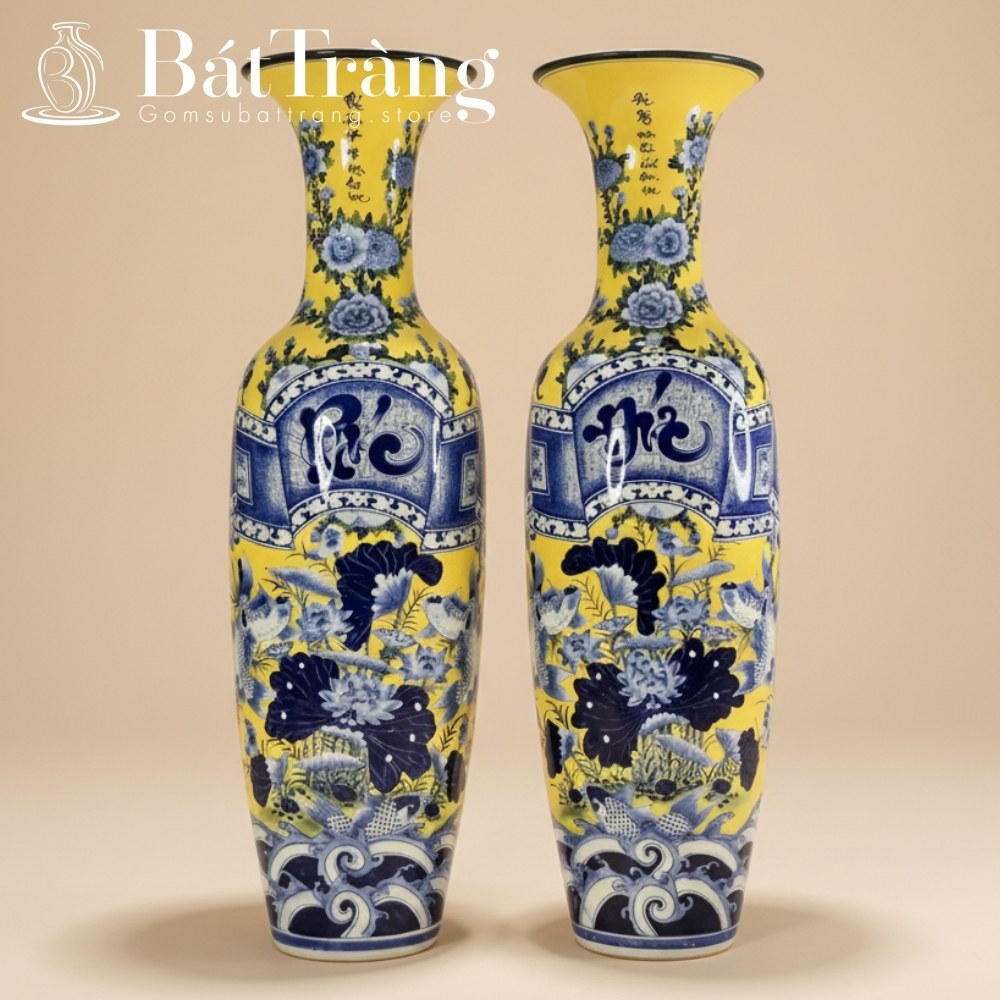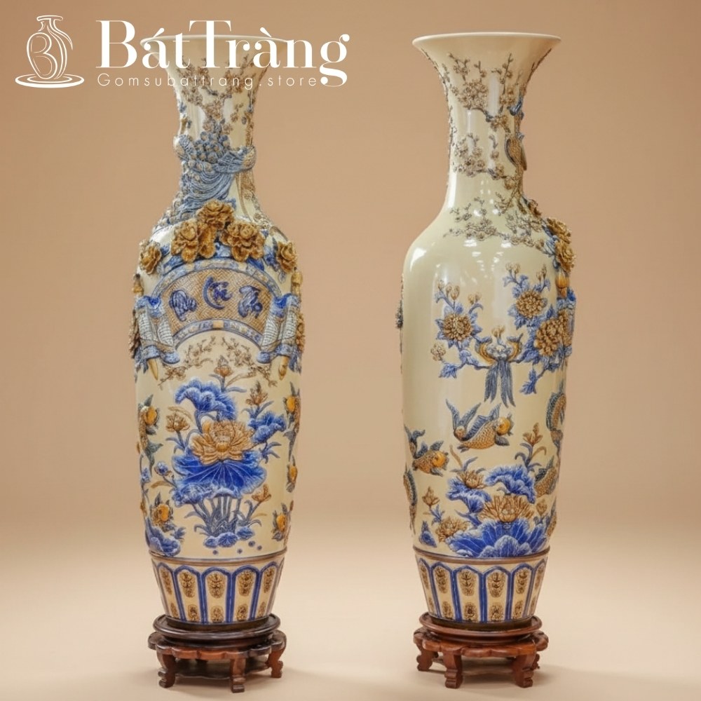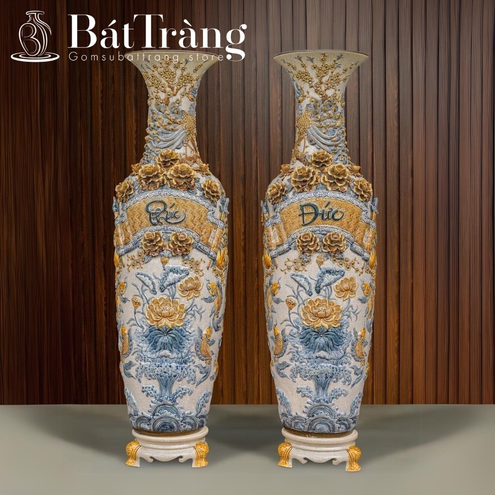- Đôi lộc bình cỡ lớn (1m4, 1m6): Một đôi lộc bình Tứ Quý hoặc Thuận Buồm Xuôi Gió đặt uy nghi tại phòng khách sẽ là món quà tân gia bề thế, mang ý nghĩa trấn trạch, thu hút vượng khí.