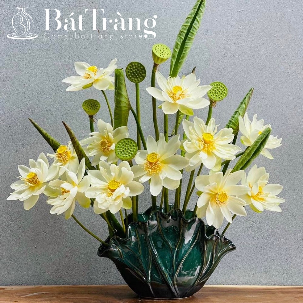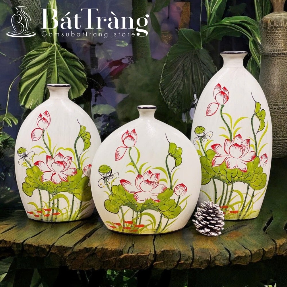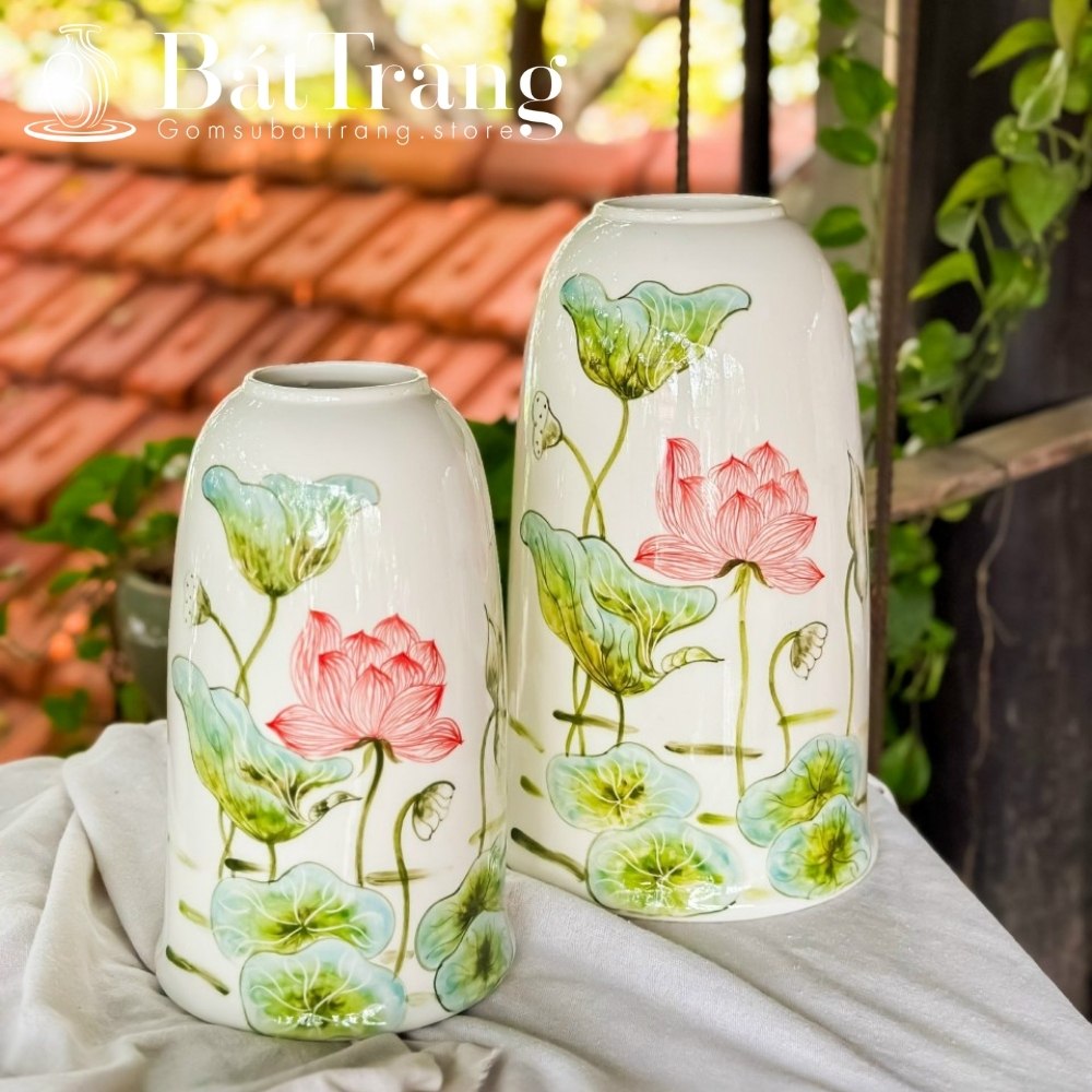 - Lọ hoa nghệ thuật: Một chiếc lọ hoa men hỏa biến nhỏ xinh hoặc lọ dáng chuông vẽ tay họa tiết hoa sen, chuồn chuồn sẽ là điểm nhấn tươi tắn cho bàn trà hoặc kệ sách.