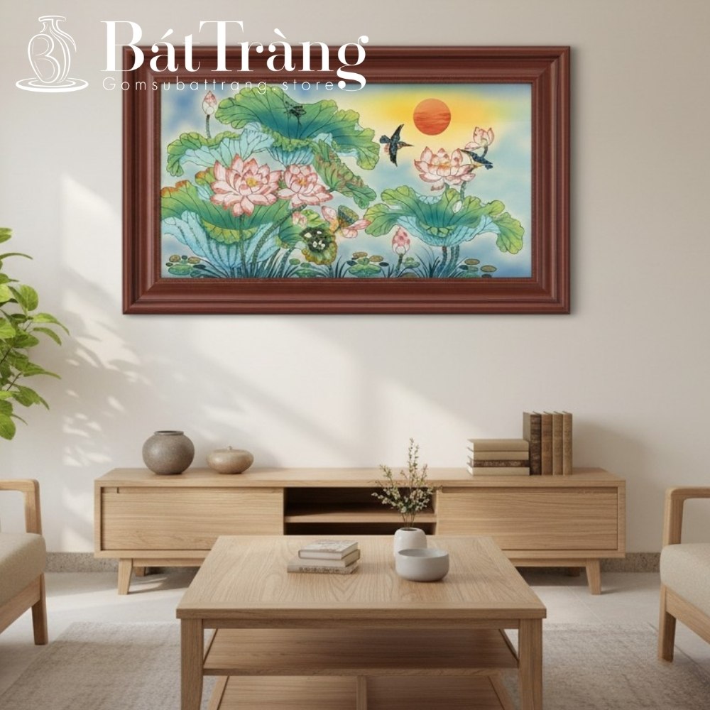 - Tranh gốm sứ tứ quý khổ lớn: Một bức tranh gốm treo ở vị trí trung tâm không chỉ làm bừng sáng không gian mà còn mang lại sự cân bằng, hài hòa và thịnh vượng.