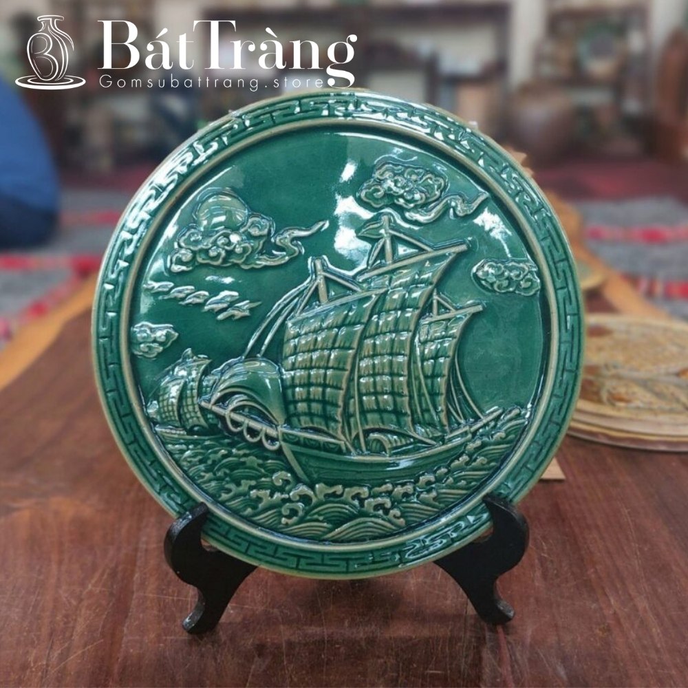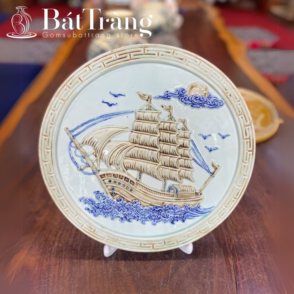 - Đĩa trưng bày phong thủy: Chọn những chiếc đĩa có họa tiết đắp nổi 3D như “Thuận Buồm Xuôi Gió”, “Mã Đáo Thành Công” hay “Cá Chép Vượt Vũ Môn”, gửi gắm lời chúc sự nghiệp thăng tiến, công thành danh toại.